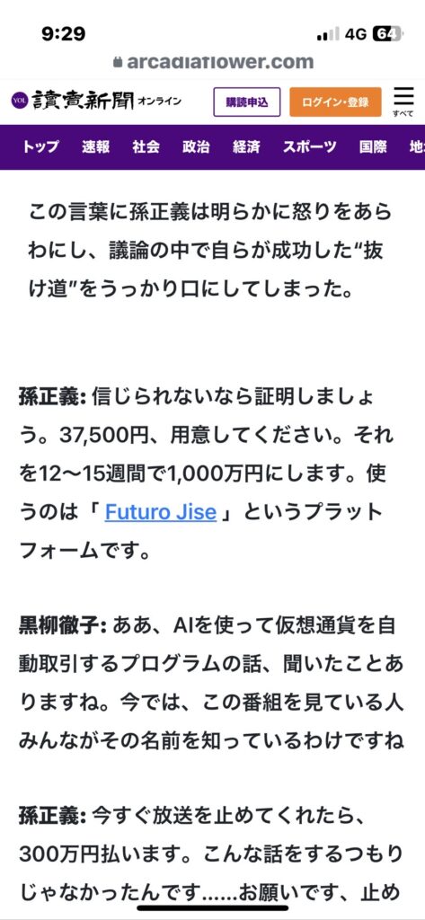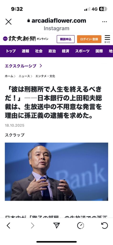 「日本銀行総裁が孫正義氏の逮捕を求めた」など、過激な内容で話題になっていますが、これは完全なフェイクニュースです。