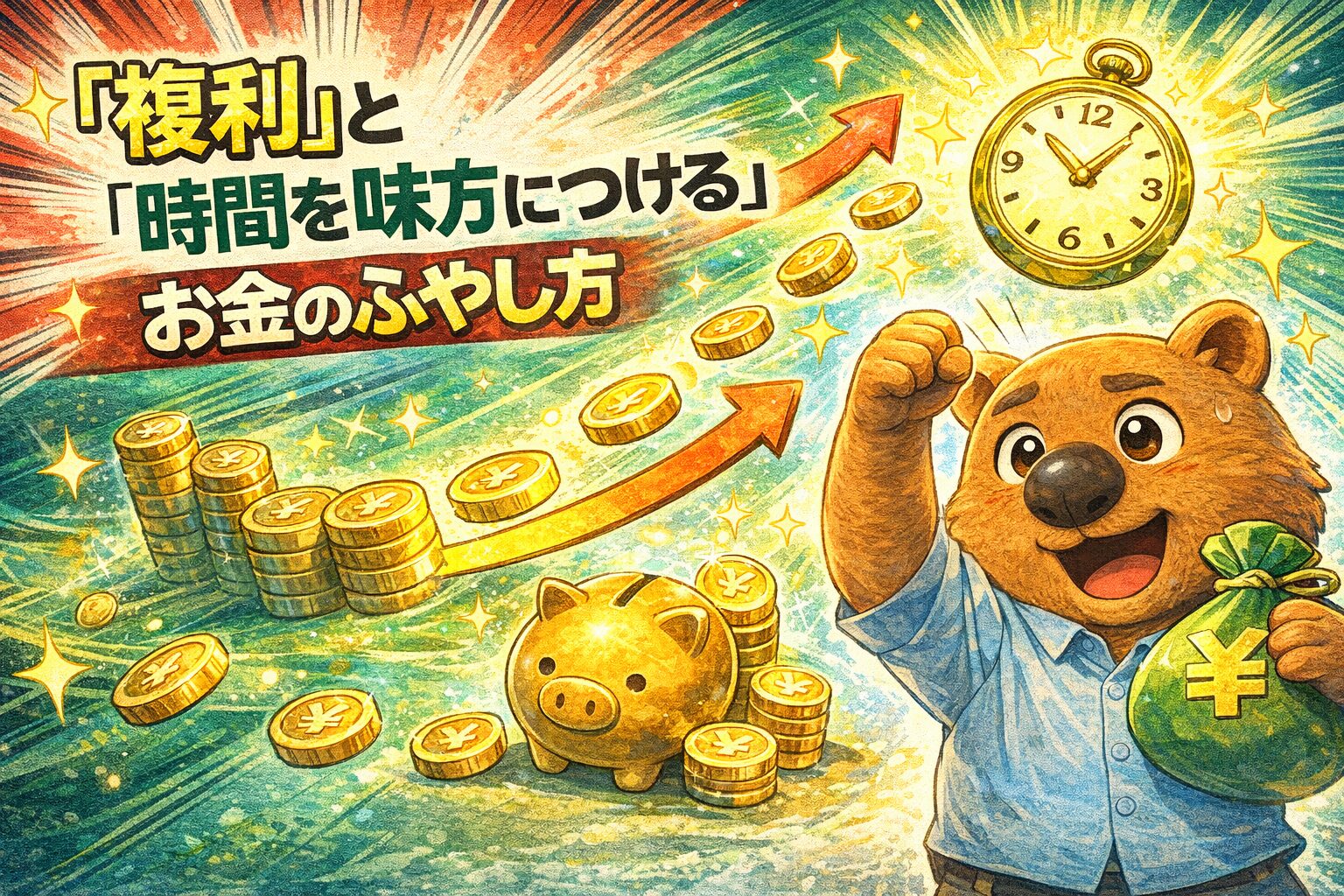 今日は、お金を上手にふやすコツとしてよく言われる「複利(ふくり)」と「時間を味方につける」って、どういうことなのかを中学生のみなさんにもわかりやすくお話します。