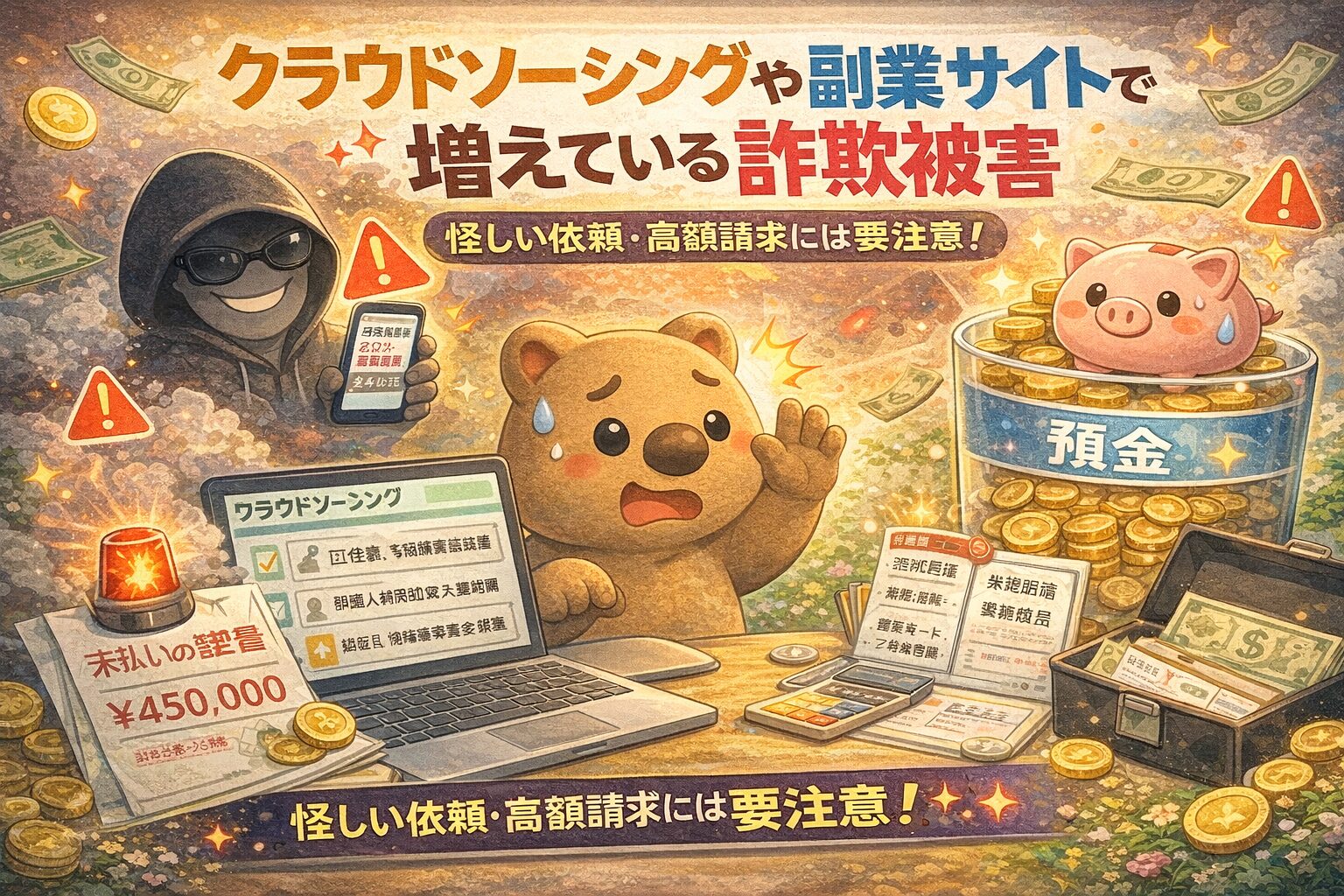 最近、クラウドソーシングや副業サービスを使った詐欺トラブルが増えています。