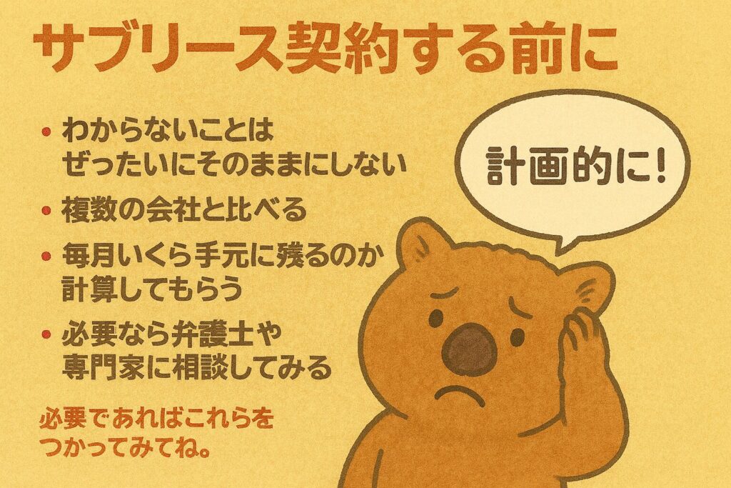 この記事では、サブリース契約の仕組みやよくある問題点、事前に確認すべきポイントをわかりやすく整理しました。