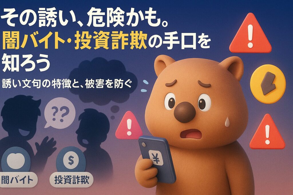 「短時間で高収入!」という甘い言葉で、実は受け子違法行為に誘い込むケースが急増しています。