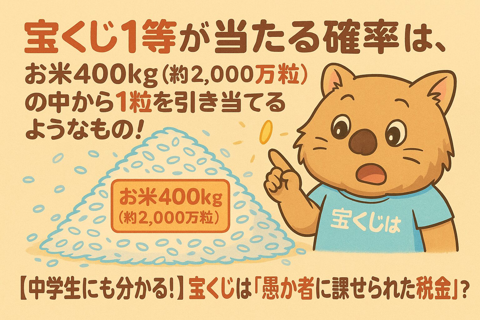 ちょっときつい表現ですが、これは宝くじの当たりにくさとお金の仕組みからきています。