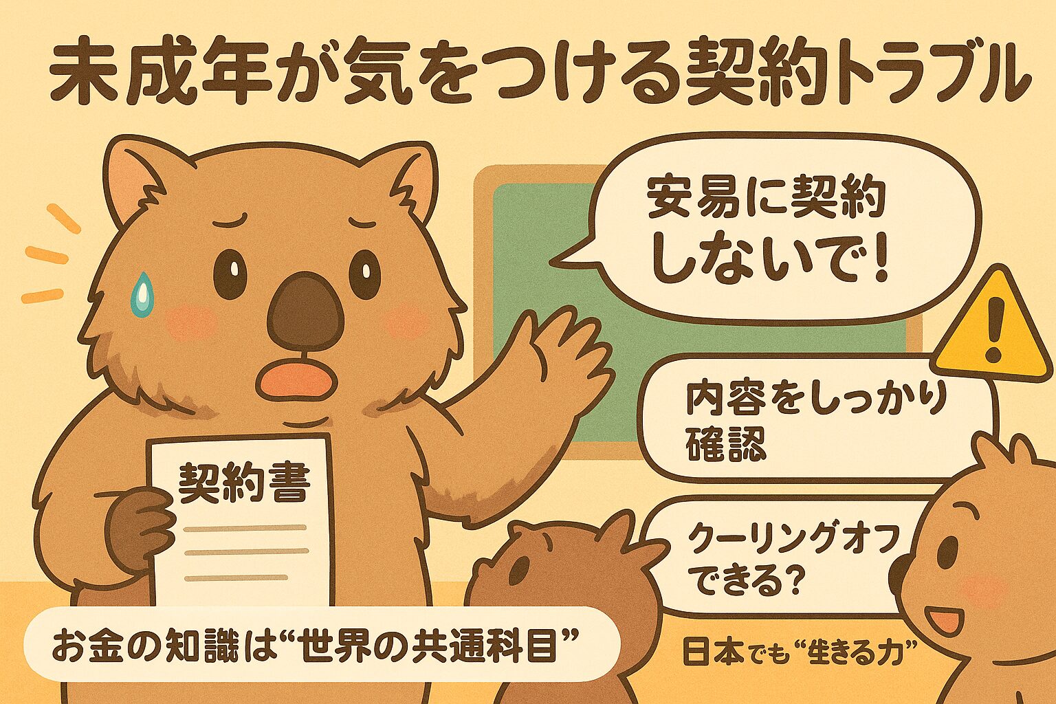 お金や契約のことは、むずかしく感じるかもしれないけど、正しく知ることがトラブルから自分を守るカギになります。