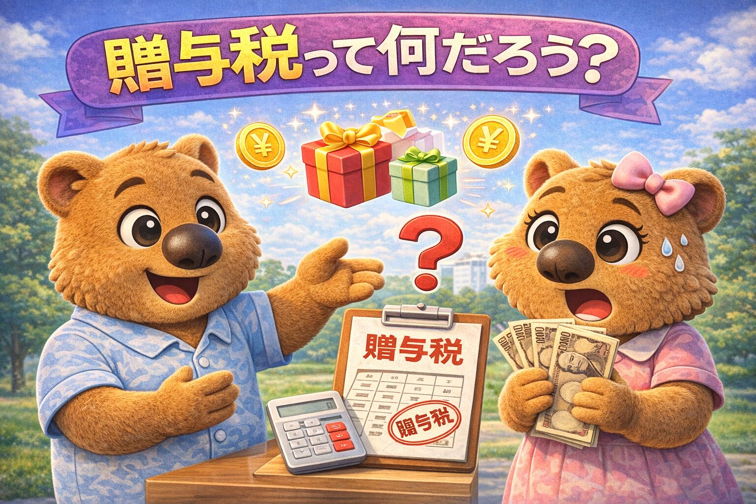 贈与税は、家族や知り合いからお金やプレゼント(たとえば現金や不動産)をもらったときに、ある金額をこえると、もらった人が払う税金のことです。