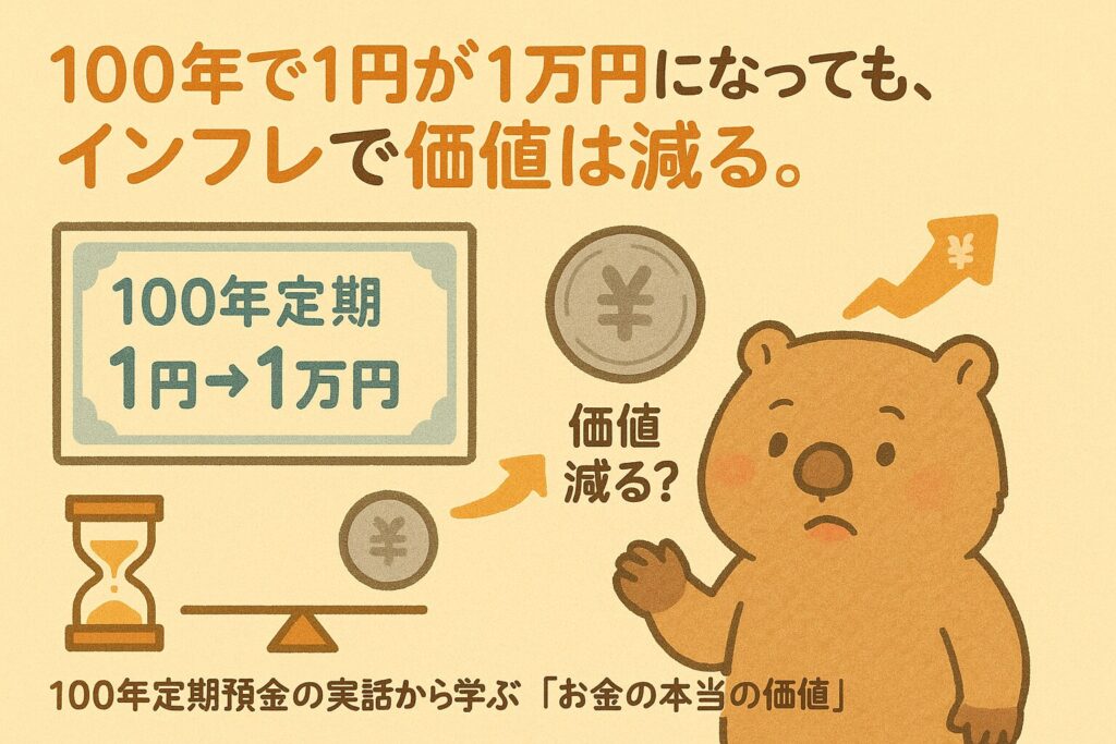 100年定期預金の話は、「お金は増えた数字より、何が買えるかが大事」ということを教えてくれます。