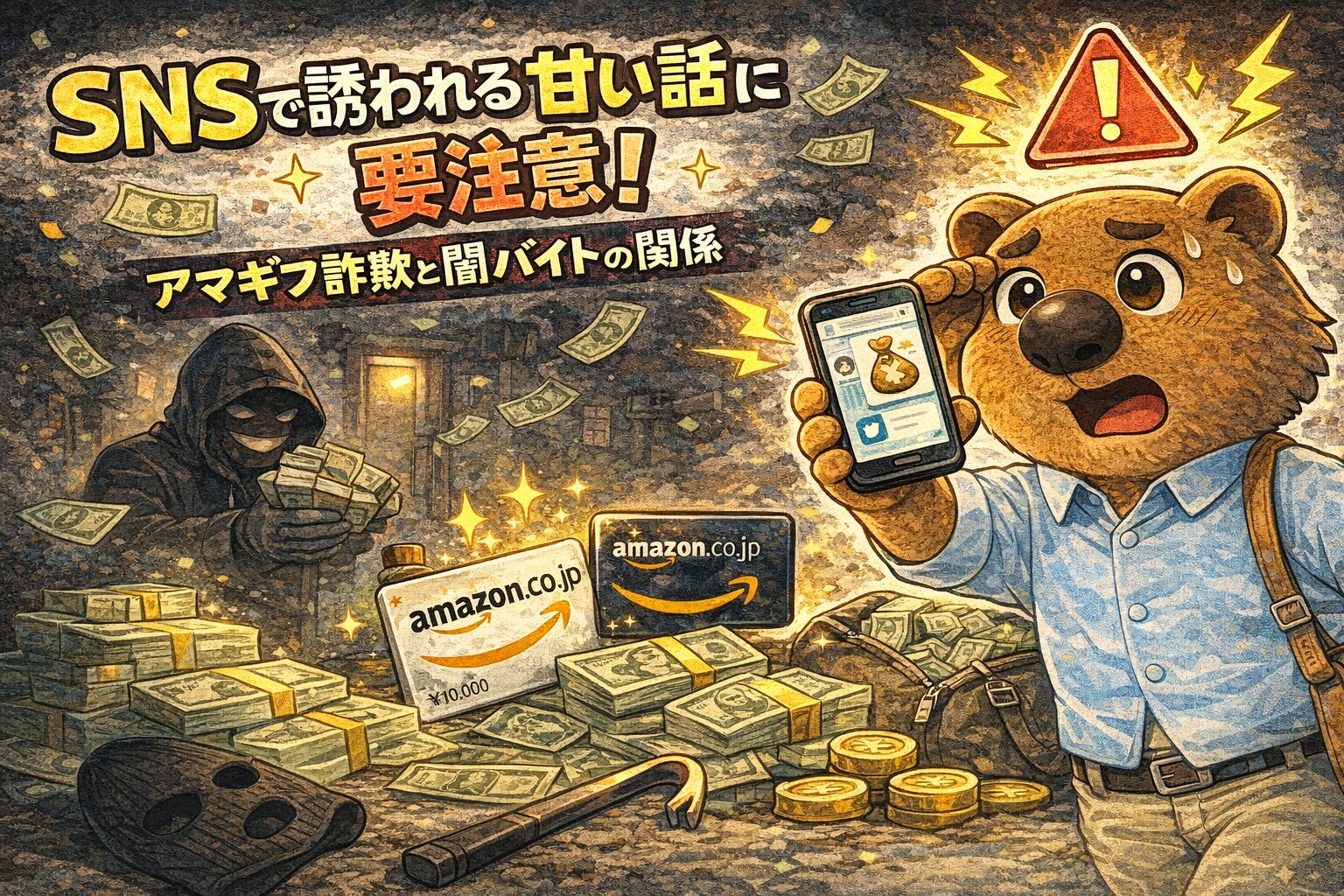 こんにちは。今回は「Amazonギフト券プレゼント」など、SNSでよく見る甘い言葉の裏にある危険な詐欺と、その後に待ち受ける「闇バイト」について、わかりやすく解説します。