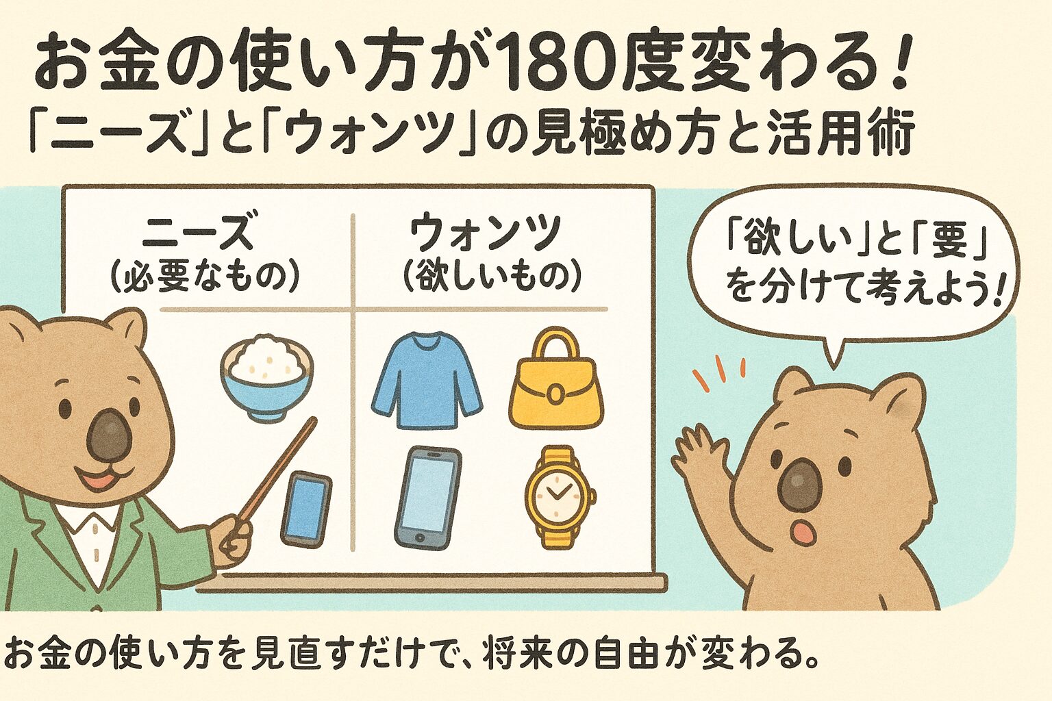 ニーズ(必要)とウォンツ(欲求)のバランスを理解すれば、無駄な出費を防ぎ、 貯金や投資もうまくいくようになります。