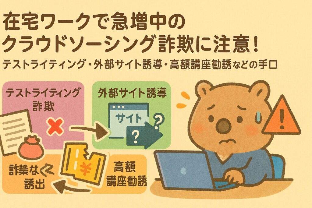 近年、在宅ワークや副業の需要が高まる中、クラウドソーシング詐欺の被害が増えています。