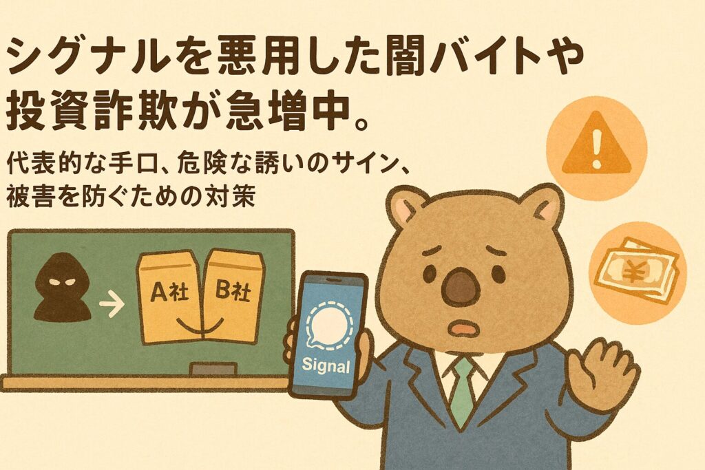 シグナルは便利なツールですが、匿名性の高さを悪用した詐欺や闇バイト勧誘が急増しています。