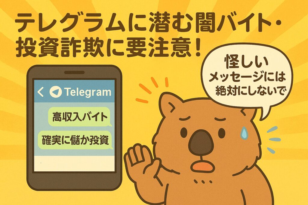 テレグラムは便利な一方で、詐欺や違法勧誘に悪用されやすい特徴があります。