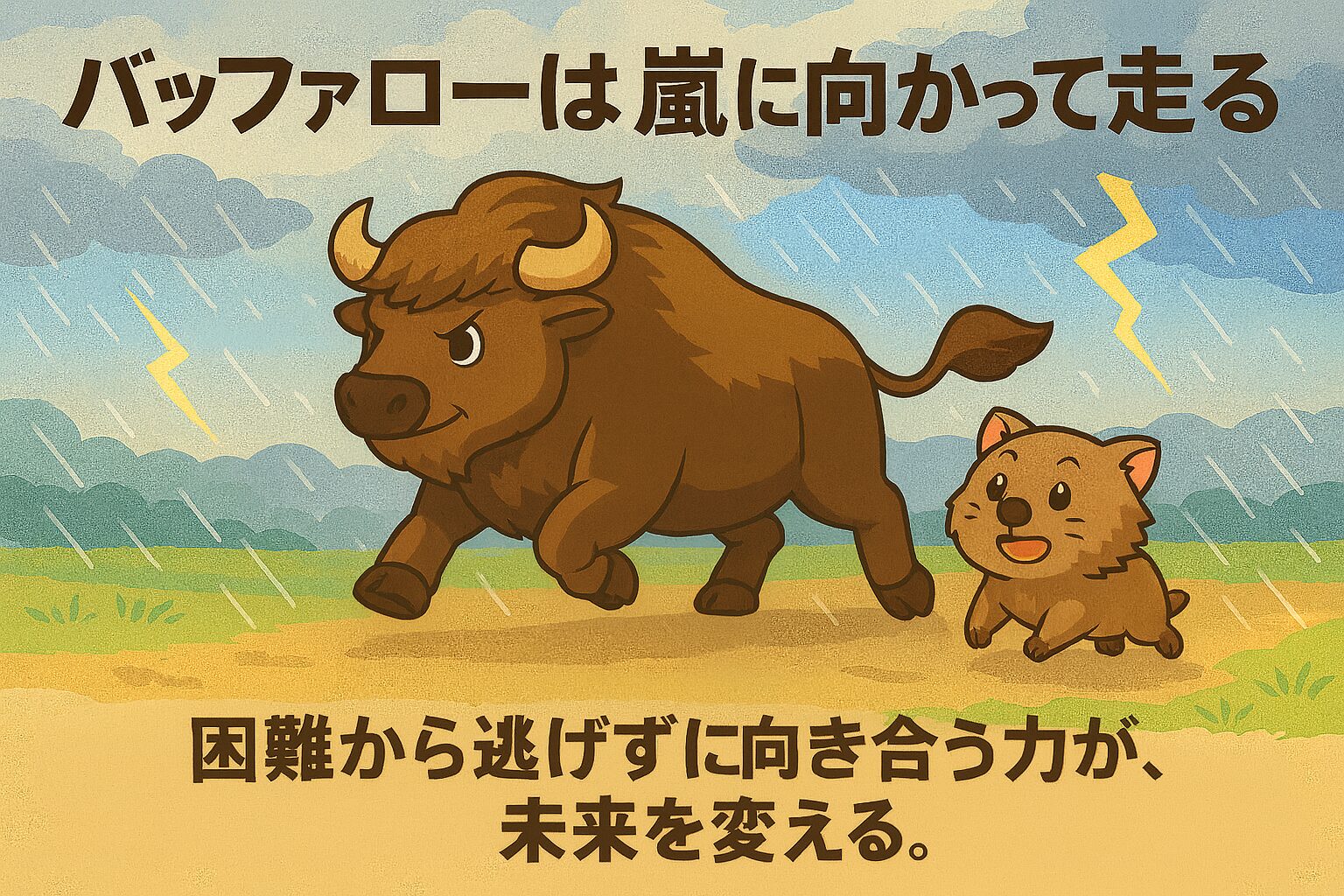 一方、バッファロー(バイソン)は嵐の進行方向へ自ら向かい、最短で嵐を通り抜けます。