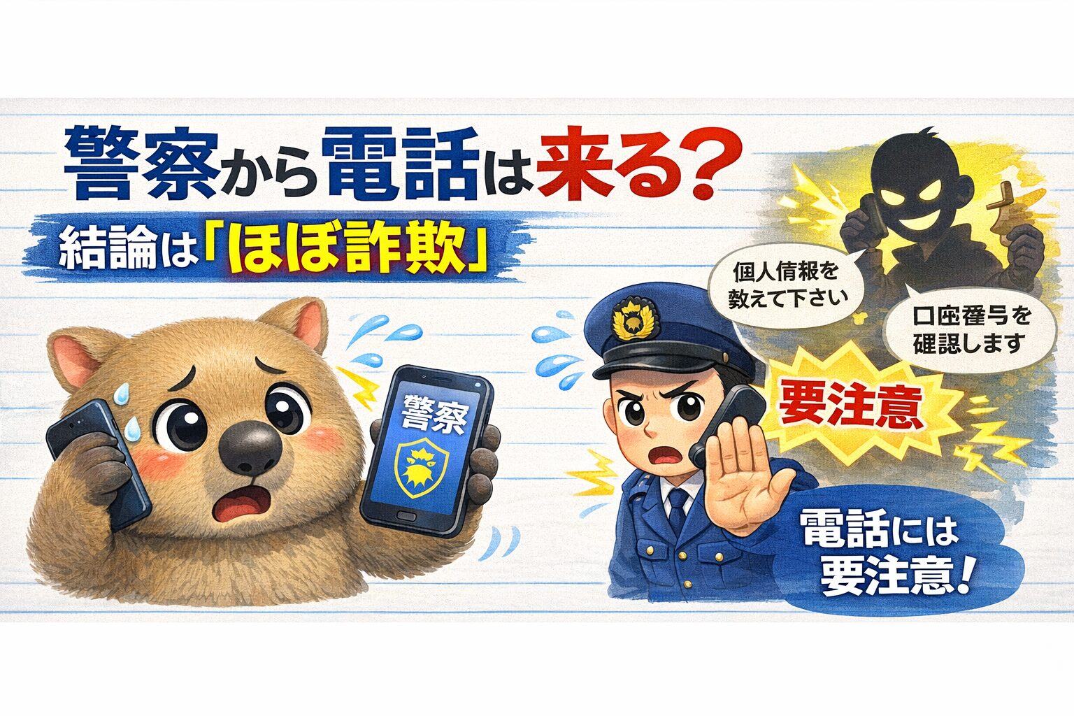 警察を名乗る突然の電話は、基本的に詐欺と思ってOKです。