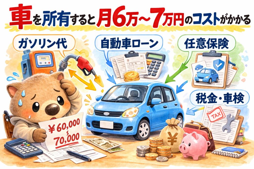 車を所有すると、 月6万〜7万円ほどの本当のコストがかかります。