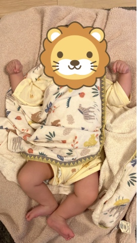 寝起きからのオムツ交換は 「まだ寝たいよ〜😴」のポーズ