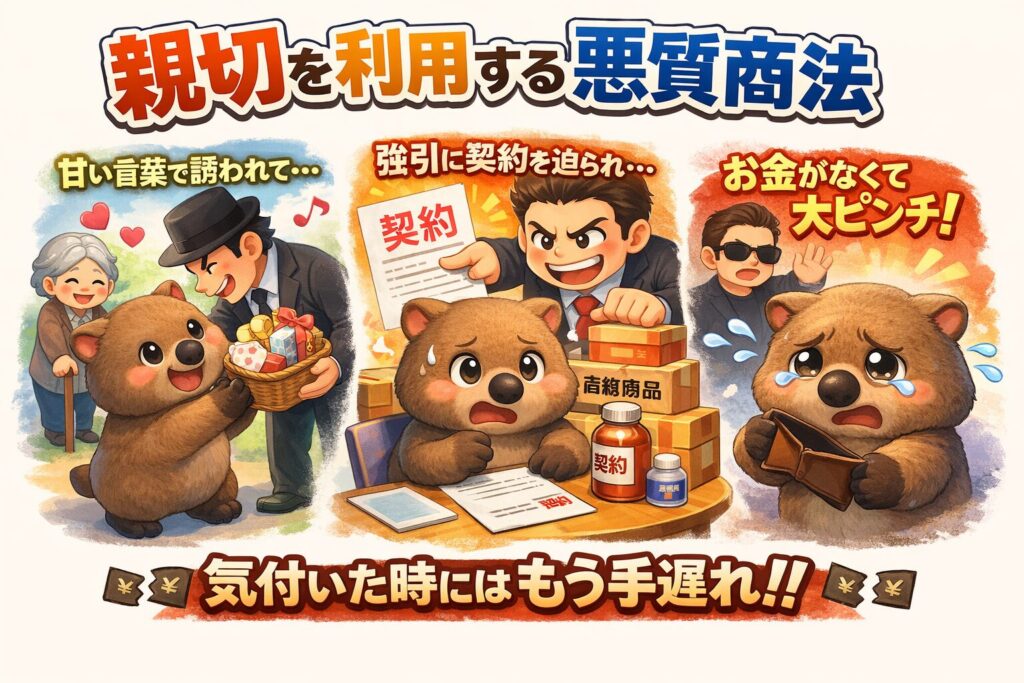 - 「今だけ無料」「今日だけ特別」と言われて、焦って契約してしまう。