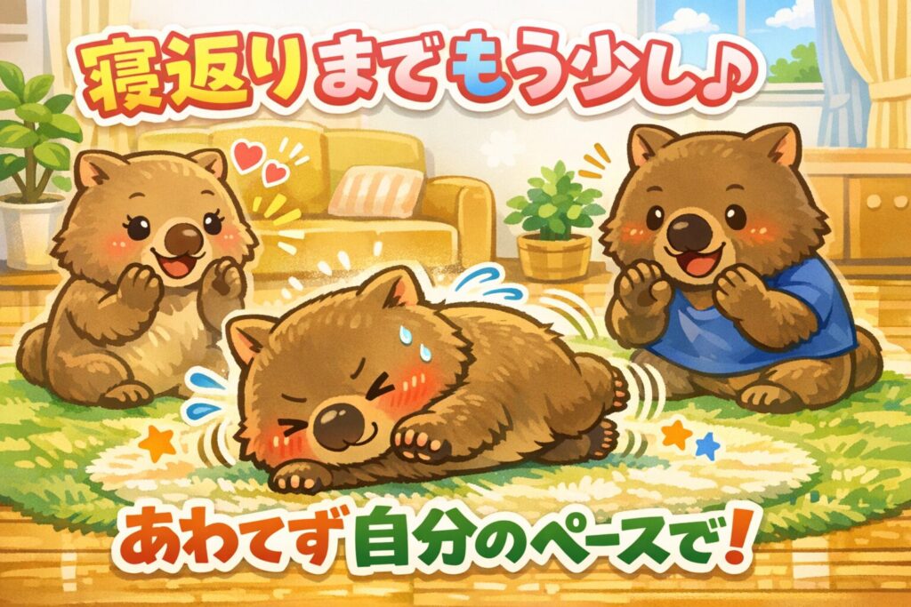 真っ赤な顔をして寝返り一つにしても、真剣に取り組んで親は応援❗️