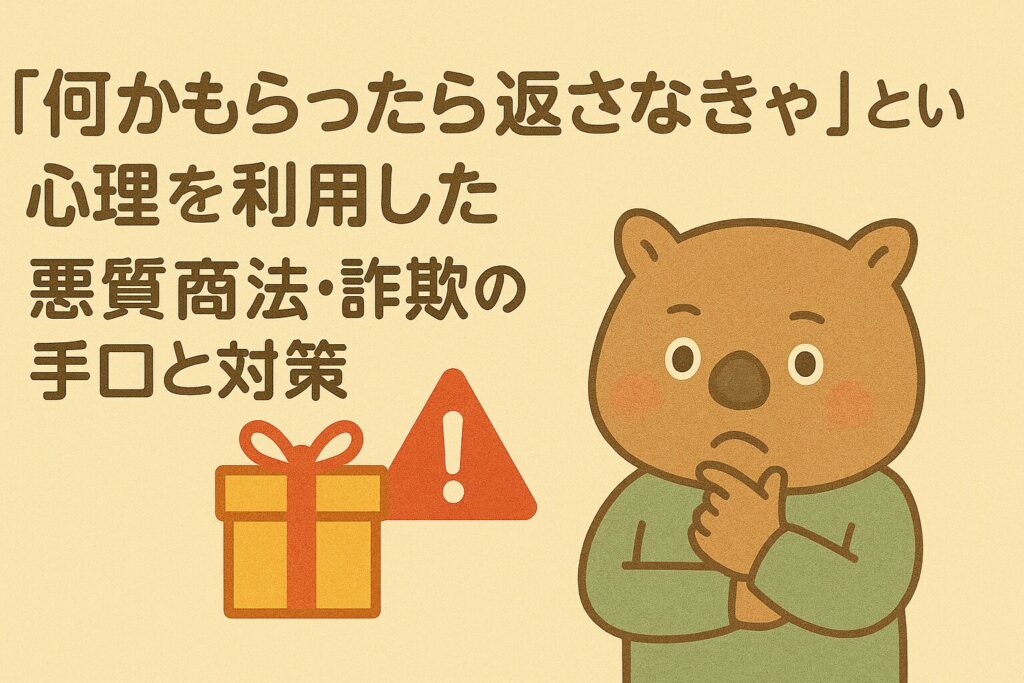 これが、返報性の原理を悪用した手口の狙いどころです。この記事では、心理トリックの仕組みと悪用パターン、そして今日から使える対策をまとめます。