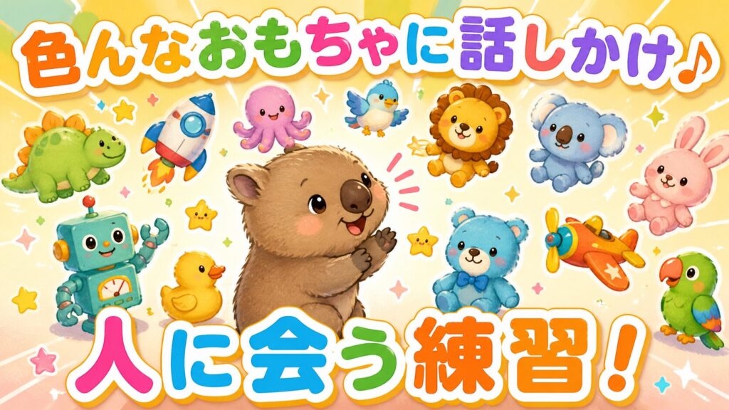 ボールを握り、絵本の表紙を見て話しかけ