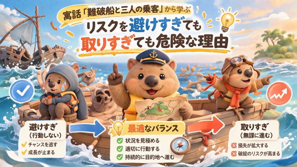 タルムードに由来するとされる小話「難破船と三人の乗客」は、リスクの取り方と生き残り戦略を教えてくれる寓話です。